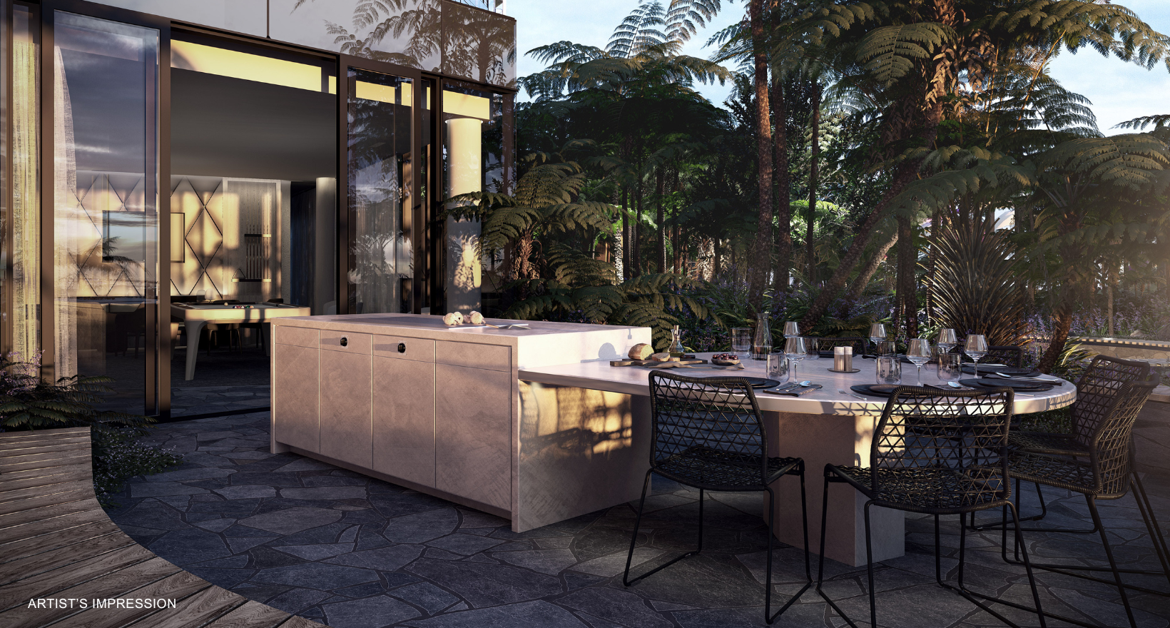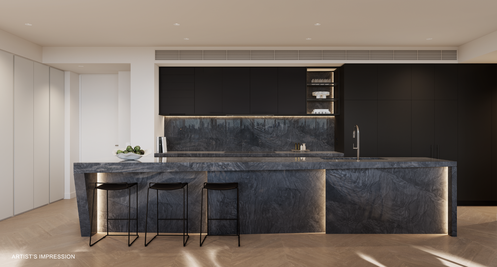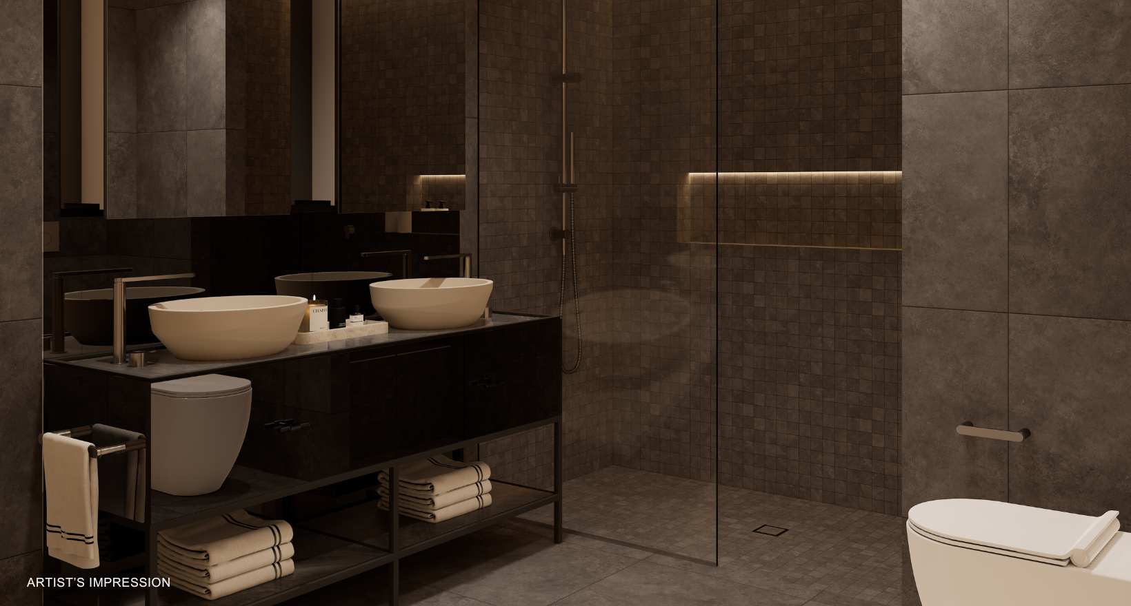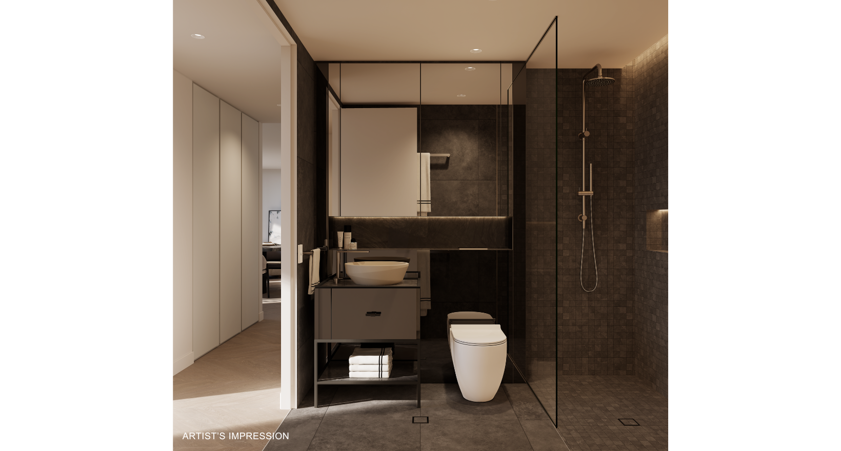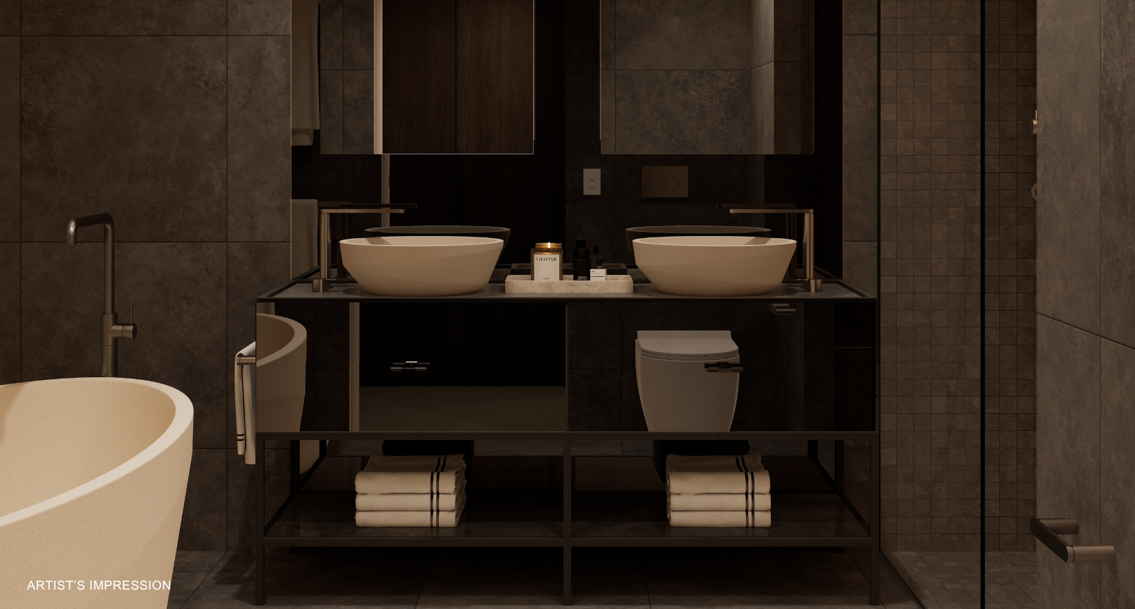 Artist's impression was produced prior to planning approval, statutory approval and commencement of construction and is subject to change. The information, image and artists' impression depicting interiors and exteriors are intended only as a guide and are not to be relied on as representative of the final product or the apartment type advertised. Furnishings are not included. Views depicted in this property listing are indicative only at approximately Level 23 and should not be relied upon as representative of any final views from any particular apartment. Purchasers should make their own enquiries as to the impact of any proposed surrounding development on any views. Photography is correct as at August 2022 and does not represent any future development that may occur in the area. The information provided herein is believed to be correct as at October2025.